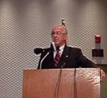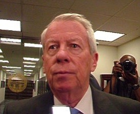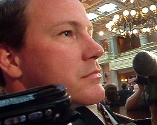Cliff Arnebec, a public policy attorney and chairman of Legal Affairs Committee of Common Cause Ohio, spoke to reporters outside of the Rhodes office tower, where Attorney General Marc Dann's office is located, to offer his views of the impeachment process.