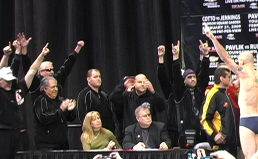 Both camps were on their best behavior when they met face-to-face Thursday Kelly Pavlik’s