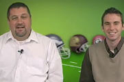 Joe Rupert, left, and Mason Shadduck, best friends and members of the Alpha Phi Delta fraternity, stand side-by-side in front of their house. The two are fans of the Pittsburgh Steelers and Cleveland Browns, respectively, and are anticipating the game between the teams Sunday.