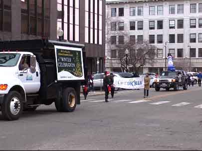 A crowd of 100 or more, many of them children, lined East Federal Street Saturday afternoon, listening to the lyrics of “Here Comes Santa Claus” as the Downtown Youngstown Holiday Parade began.