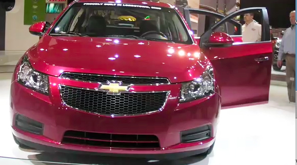 Bill Patton of Canfield, a GM Lordstown retiree, and his wife, Heidi Patton, look at the Chevy Cruze at the Cleveland Auto Show.