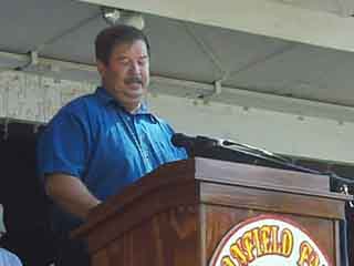 Family man cuts ribbon to open fair