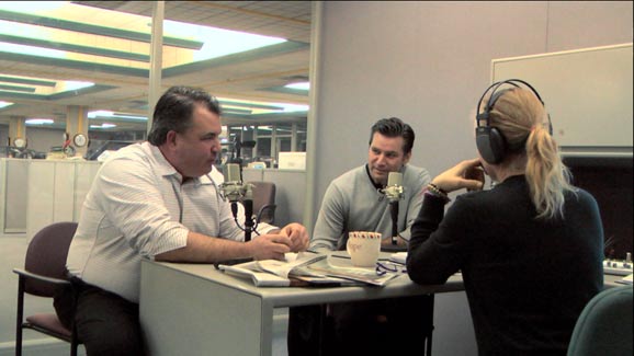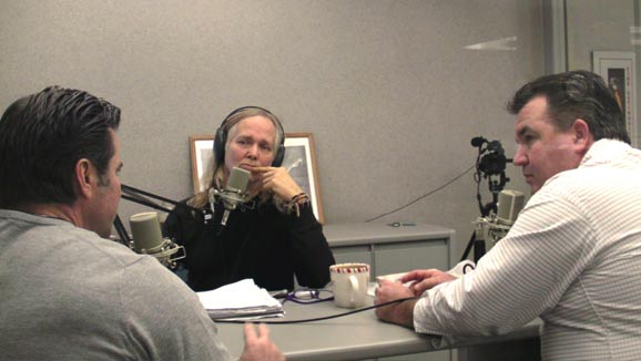 Happy kids: Broadcaster Tim Neverett announced players Alex Presley, Josh Harrison and Gaby Sanchez