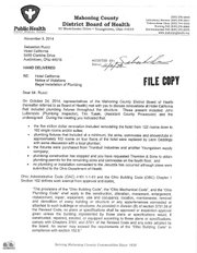That letter goes on to list plan approval requirements, submission of plans, the inspection process, being notified of when work would be done, testing requirements and licensed registered plumber requirements, among other things. Since that communication in November, there have been proposals traded back and forth between Rucci and the district board of health and a proposal now is being discussed.