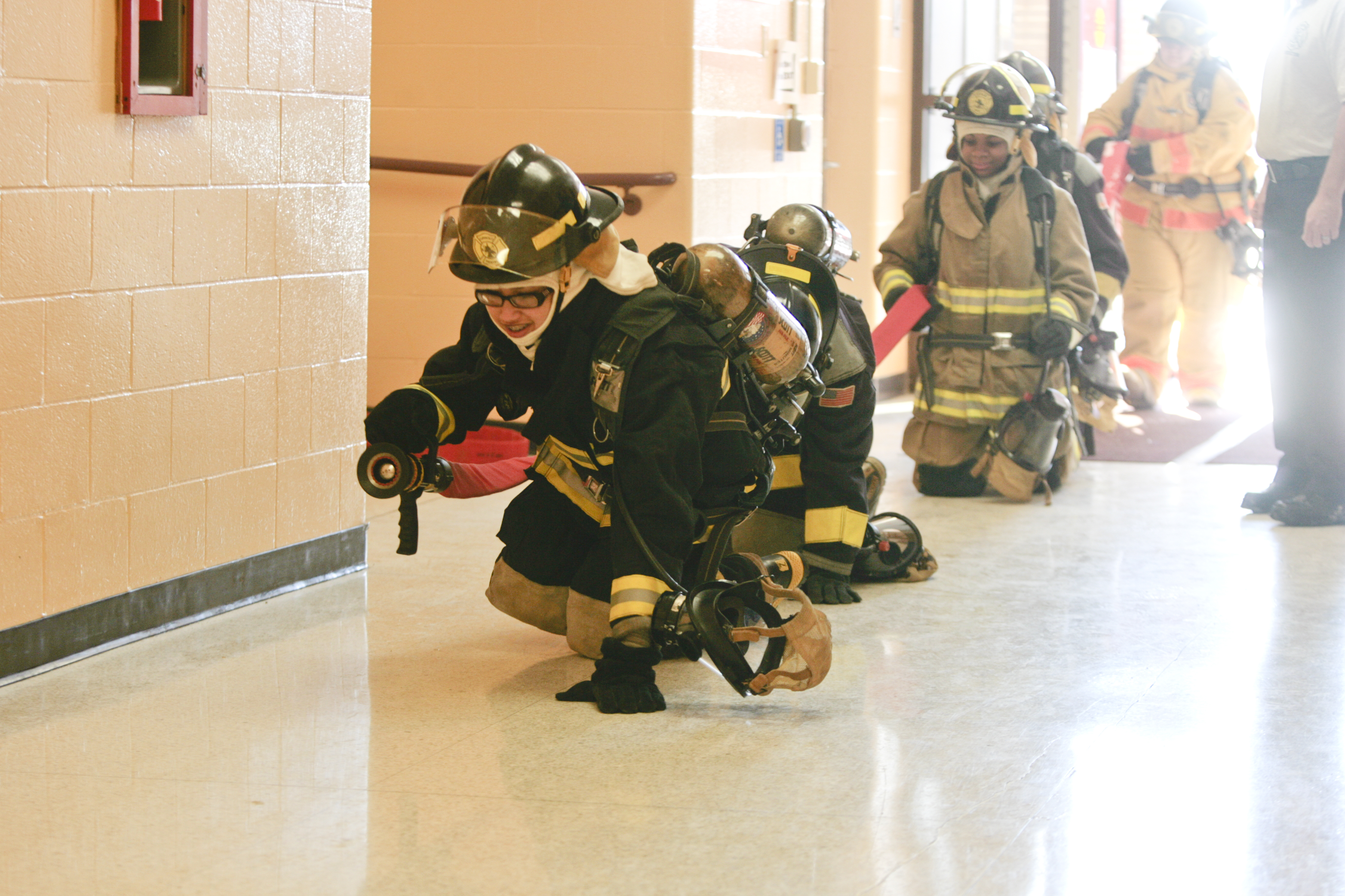 Five Choffin Career Center students, from left, Rickia Alli, Christopher Stevens, Dionshay Taylor, Kristen Bowman and Makala Shultz, are taking a course in firefighting taught by members of the Youngstown Fire Department.