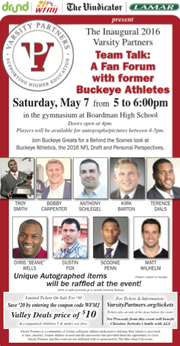 The Inaugural 2016 Varsity Partners will be hosting Team Talk: A Fan Forum with former Buckeye Athletes on Saturday, May 7 from 5 to 6pm. The event will be held in the Boardman High School Gymnasium with doors opening one hour prior. Players will be available for autographs/pictures between 4-5pm.