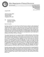 Dam Safety Inspection Report on the Woodside Lake Dam from August 4, 2016, conducted by the Ohio Department of Natural Resources.