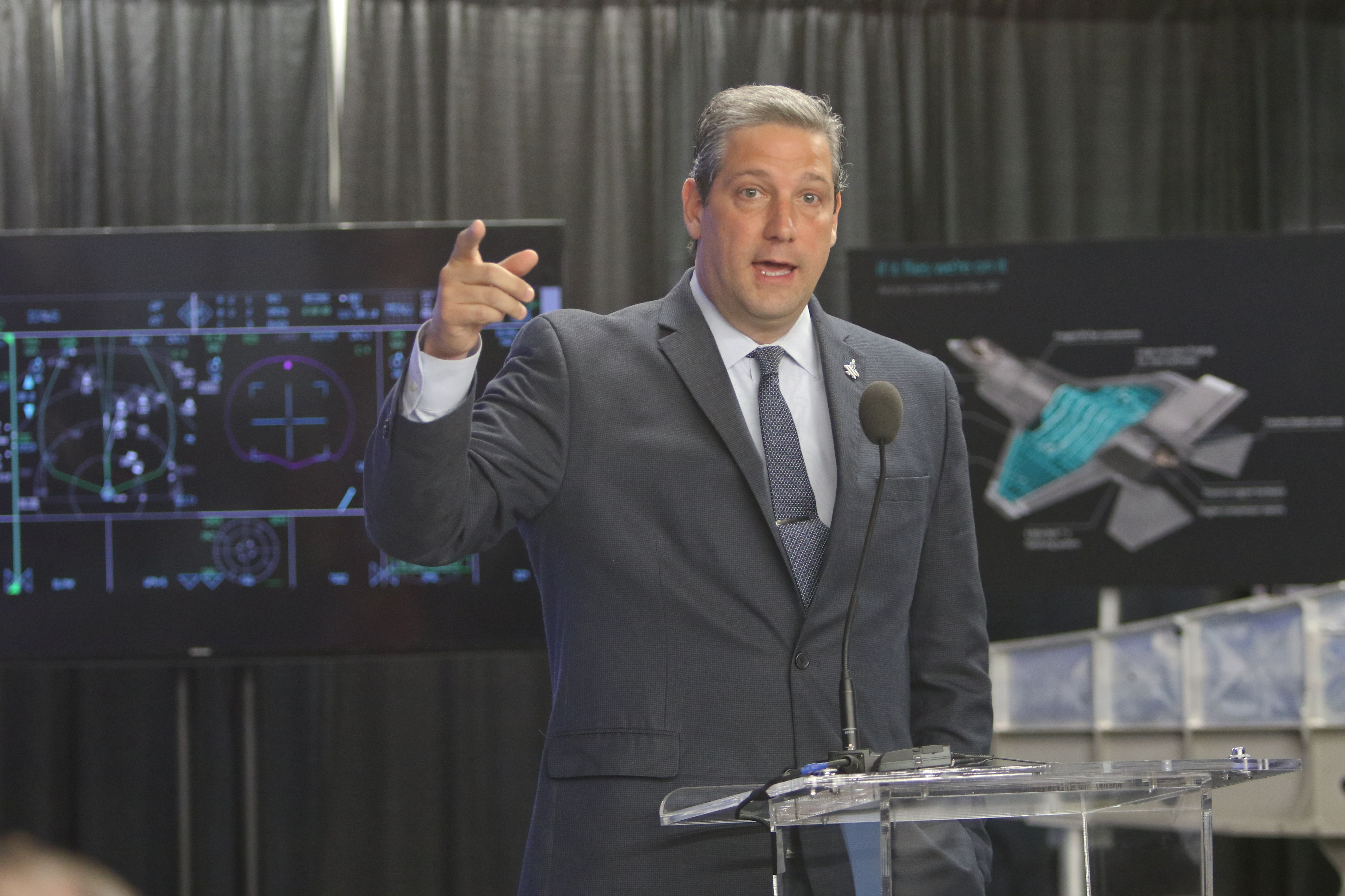 U.S. Rep. Tim Ryan of Howland, D-13th, flew a F-35 simulator today – and he didn't crash it. Lockheed Martin officials brought in the simulator to show Arconic in Niles, its supplier, what the final product is like to fly.