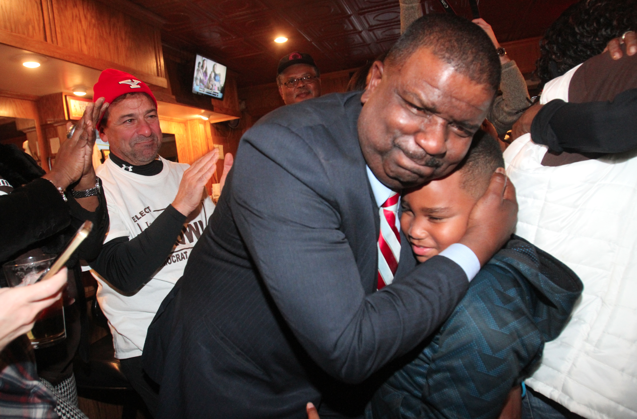 Democrat Jamael Tito Brown greets well-wishers at the MVR as he celebrated an unofficial, narrow win in the Youngstown mayoral race.