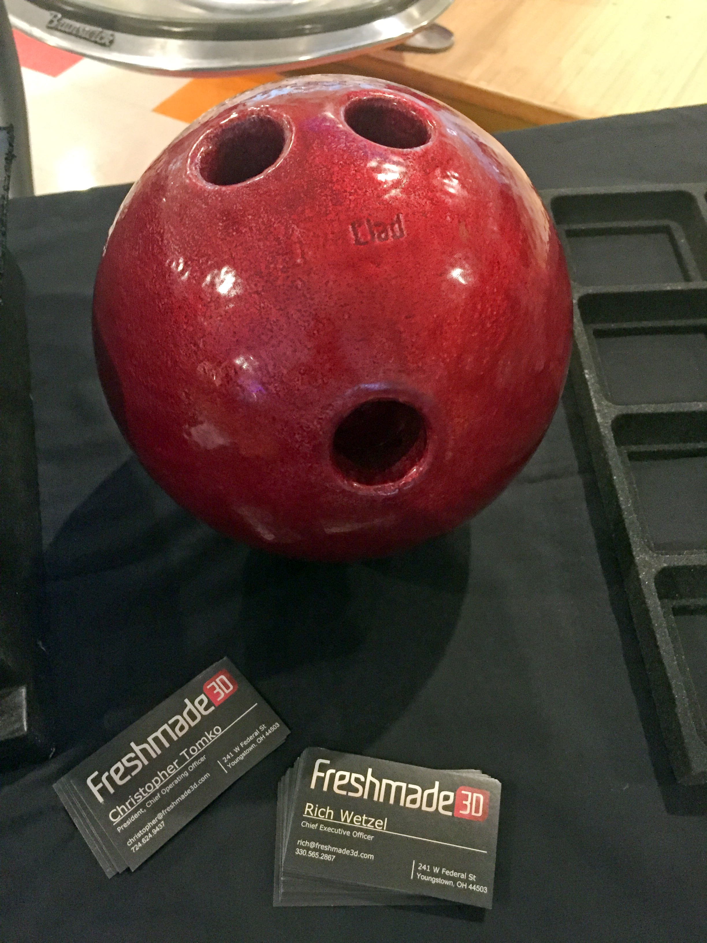 Freshmade3D introduced the durability of its product AMClad with some strikes and spares at Camelot Lanes today.