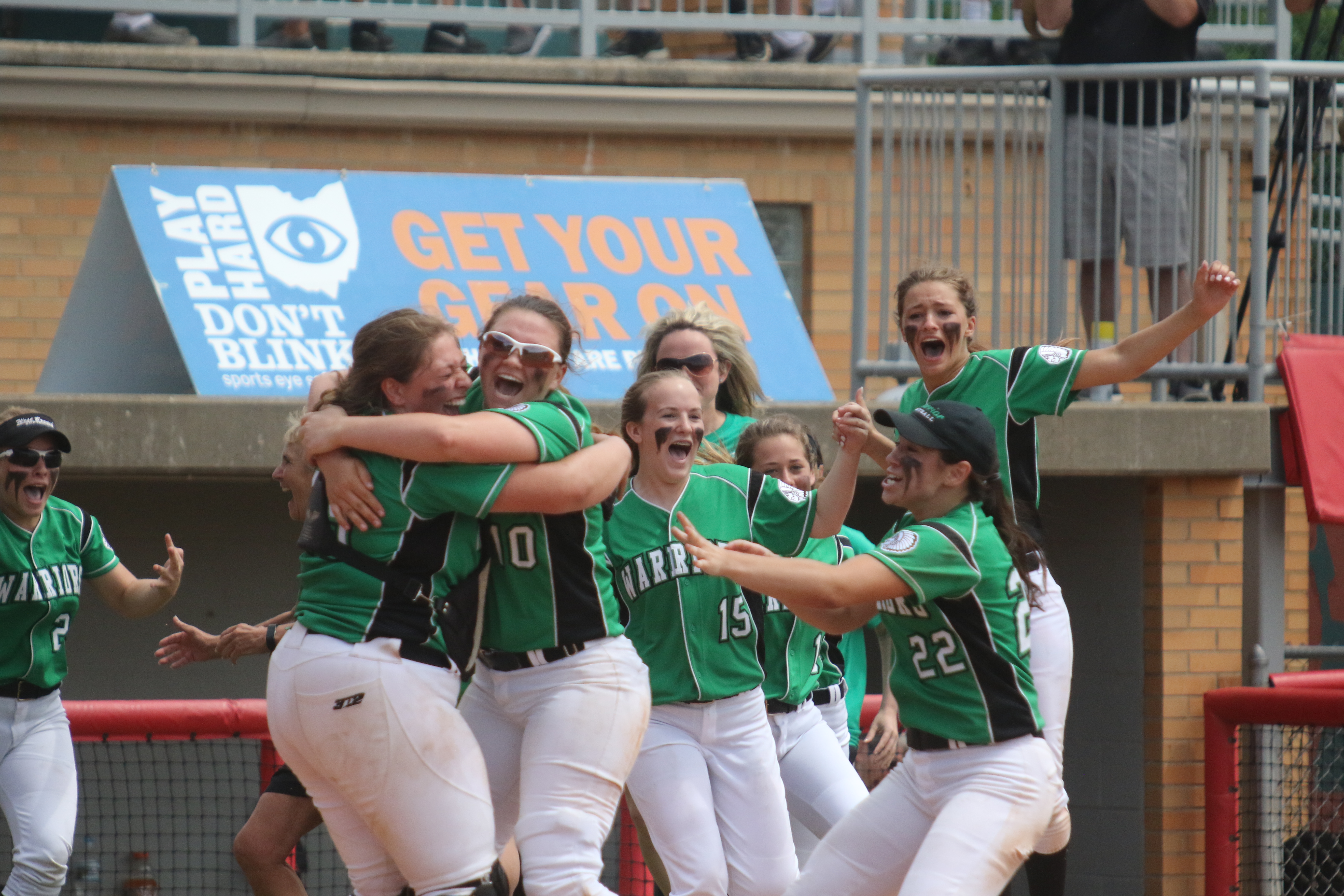 Twins Kamryn, left, and Kendyl Buckley check out their diplomas during commencement Wednesday night at Packard Music Hall in Warren.