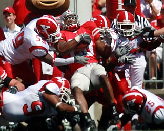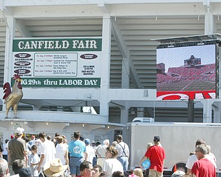 Senior Cheerleader Mandie Custer teaches the band a new cheer. "We've got SPIRIT, how about YOU??"