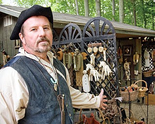 HANDIWORK: Art Blair of Girard uses a rasp to shape many of his wooden folk art sculptures. Shaker Festival, Beaver, OH Sunday, August 10, 2008.