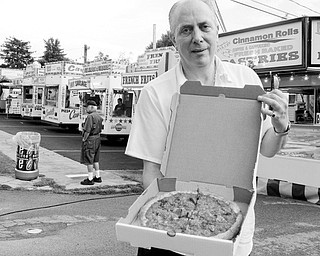 DELICIOUS: Friends Gloria Conman of Austintown, left, Jan Maglaughlin of Boardman and Lucille Brown of Youngstown enjoy a laugh and a slice of pizza during the Brier Hill Italian Festival in Youngstown on Thursday. The …