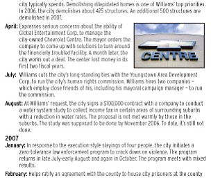 MAYORAL SUPPORT: Mayor Jay Williams waves to a passerby in downtown Youngstown. Williams calls the headway made by the city’s demolition crews in demolishing vacant and abandoned buildings one of the most tangible successes to …