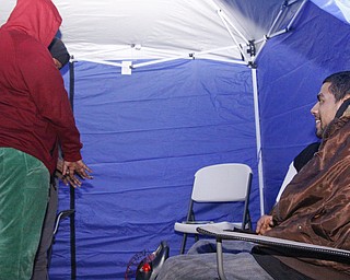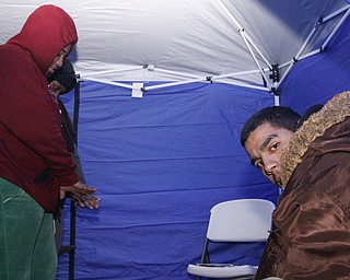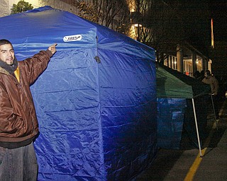 L-R Bryan Piccirillo (22) and Robert Colick (22) of New Castle camp out in line at Best Buy in Boardman, Thursday November 27, 2008