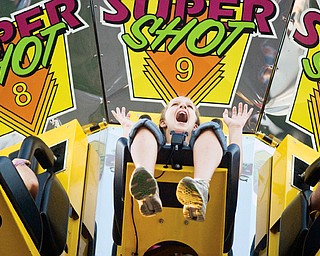 Jessica Jacobs, 11, of Ellsworth free falls on the Super Shot ride at the Canfield Fair. Daniel C. Britt.