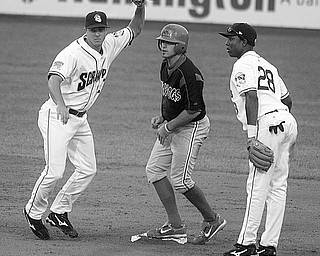 INDIANS PROSPECT: Mahoning Valley Srappers shortstop Lonnie Chisenhall, left, batted .290 while leading the Scrappers in hits (80) and home runs (5) this season. He was the first-round choice of the Cleveland Indians in the …