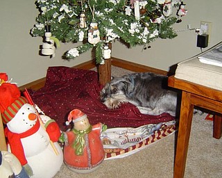 Leanna Hartsough and her dog, Zoey, get in the Christmas spirit. Lana Van Auker of Canfield captured her granddaughter and "grandpup" in action.