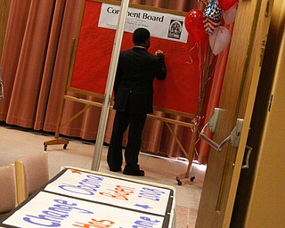YSU Classified Library Media Technical Assistant 2 Brenda Scarborough of Youngstown writes a comment on a board at YSU Kilcawley Chestnut Room, Tuesday January 20, 2009