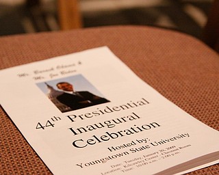 Dr. Victor Wan-tatah, director of african studies at YSU clasps his hand as he listens to the Inauguration at YSU Kilcawley Chestnut Room, Tuesday January 20, 2009