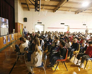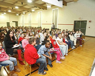 Ms. Lane, Tyler Johnson, Kassandra Roman and Alexis Taylor stand outside Williamson Elementary in Youngstown to release balloons with paper attachments of their hopes and dreams, Tuesday January 20, 2009