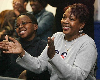 Beatrice Nelson and her son Rashaan Nelson 8, both of Youngstown, make their way to the inauguration