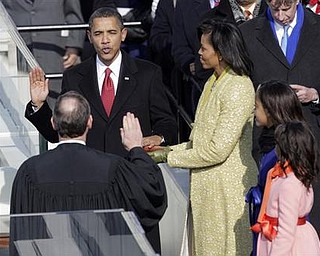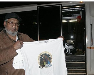 Rickie Monroe ofYoungstown and a deacon a Jueruselm Baptist Chruch re3axcts during Obama swearing in. wd lewis