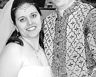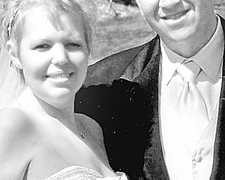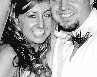 Erica Shirilla, age 10, and her mother, Andrea Shirilla, both of Boardman, put the final pieces of tape on Dolly, a scarecrow named for her resemblence to the country singer Dolly Parton, that overlooks their …
