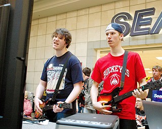 Criminal Supervisor, Doreene Carson, and Criminal Clerk, Mike Diana, stand alongside boxes of bench warrants, to be considered for dismissal by a judge, in the office of Sarah Brown-Clark, Clerk of Youngstown Municipal Court, Thursday …