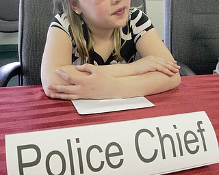 LEARNING THE RULES: John Popa, a South Range Elementary School third grader, became Beaver Township’s temporary zoning inspector as students assumed the roles of township officials during a mock trustees’ meeting Friday. The visit to …