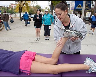 SURVIVORS IN PINK: Geralyn Lucas, right, writer of the book and screenplay, “Why I Wore Lipstick to My Mastectomy,” talks with Patti McSuley of Boardman on Monday at the Pink Ribbon Tea at The Georgetown …