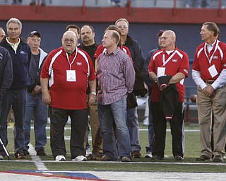 WITH HONOR: McGuffey Elementary kindergartners Bernard Thomas, right, and Timothy Davis applaud as Richard Scarsella, president of the William Holmes McGuffey Historical Society, honors Gilbert “Gibby” James of Canfield, far left, with the fourth annual …