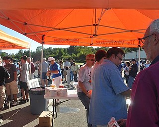 Special to The Vindicator/Nick Mays: Wearing T-shirts that show their support for the Great Strides fundraising walk for Cystic Fibrosis Northern Ohio Chapter on Sept. 18 and the annual Tee Off to Cure CF golf …