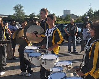 Members of the Springfield Local High School Marching Band are all smiles after their victory over McDonald. (credit: Olivia Buzzacco)