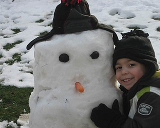 Landon and Lanie Joyce, ages 3 and 1, of Boardman, built their first snowman of the year with help from their mom and dad, Casie and David Joyce..