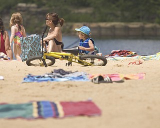 LISA-ANN ISHIHARA | THE VINDICATOR..Katrina Graves of Akron puts her daughter Darvy, 2, into a floatee during day one of Jonesfest at Nelson Ledges Quarry Park.