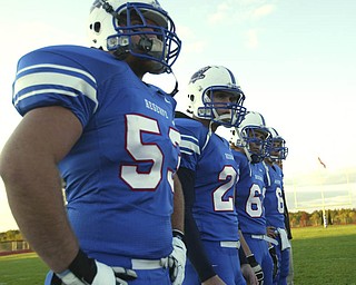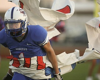 ROBERT K. YOSAY | THE VINDICATOR.. Shovin him out of bounds is Indians #47 NO NAME - Western Reserve Blue Devils vs Southern Local Indians at Western Reserve Stadium ..-30-..