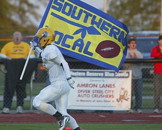 ROBERT K. YOSAY | THE VINDICATOR.. QB #6 blue Devils Jeffrey Clegg takes off for the sidelines to set up another Blue devil first down - chasing him is #12 Josh Melhorn - Western Reserve …