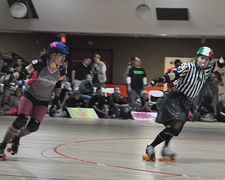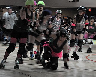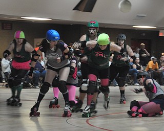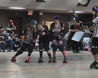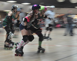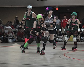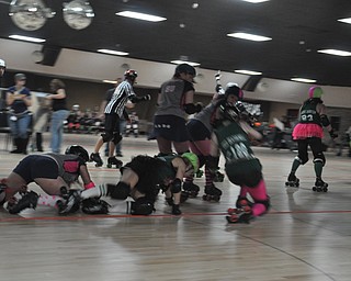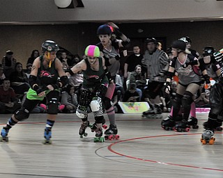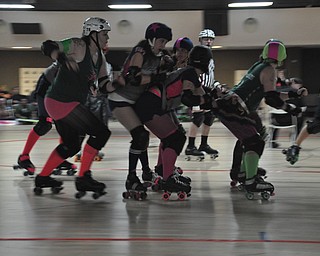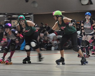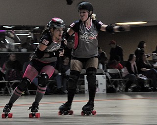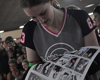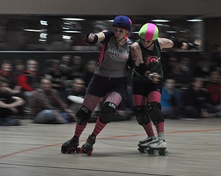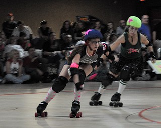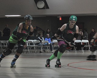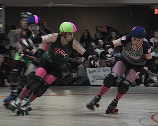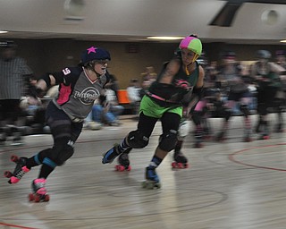 (14) Jenn Termine of Champion gets past (8) Lindsey Parkins during their game Monday night.