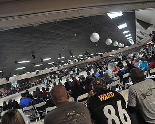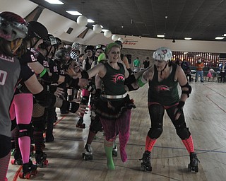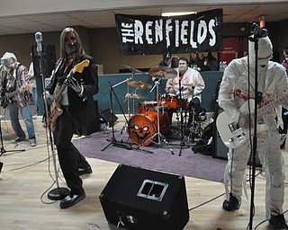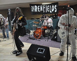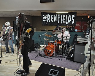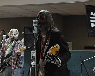 Justyn Newcomb of Niles prepares for another weekend at the Canfield Scaregrounds. He is sure to scare a few folks as they make their way through the haunted house and hayride.