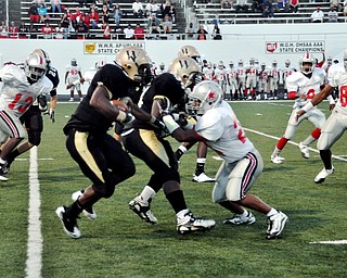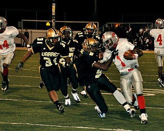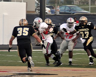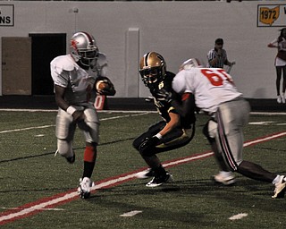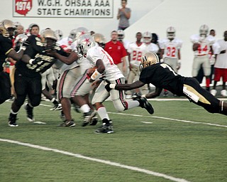 ROBERT K. YOSAY | THE VINDICATOR..GOOD SAVE as Boardmans # 33 Carmen Tarantino barely catches #3 Roosevelt Griffith as he gets pushed out at the 3 yard line - Boardman @ Mooney (YSU).-30