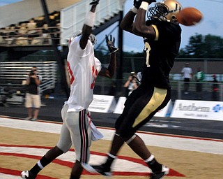 ROBERT K. YOSAY | THE VINDICATOR..Mooneys #3 Roosevelt Griffith almost falls but is helped into the endzone by #51 Carmen Lanzo as Mooney Scored its second touchdown - Boardman @ Mooney (YSU).-30