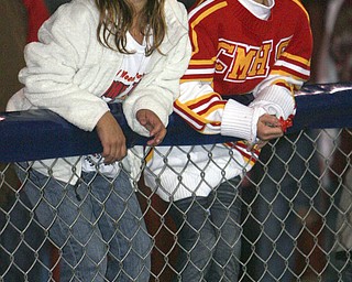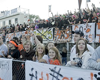 William D Lewis|The Vindicator Harding's Edward Killingworth , left, celebrates with Demond Hymes after scoring during 1 rst qtr action Friday at Howland.