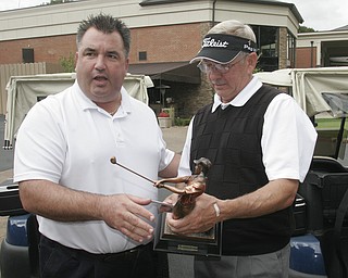 William D. Lewis | The Vindicator Golf winners Senior div. Bob Leonard, left, and Super Senior Ed Antonelli with trophies Friday.