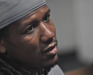 Youngstown State University student Jackie Rager of Struthers talks with …