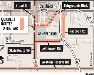 R. Robert Strain with Bates Brothers Amusement polishes the head of Pharoah’s Fury at the Canfield Fairgrounds on Tuesday. The 165th Canfield Fair opens today.