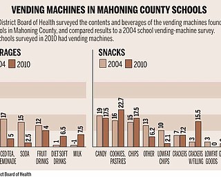 Lines form at the snack and beverage machines during the lunch hour at Boardman High School. A 2010 survey of school vending machines by the Mahoning County District Board of Health found overall a significant …