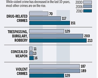 Liberty police officers Ray Buhala, left, and Robert Altier, right, inspect a vacant apartment building in the southern part of the township. As the township evolves from a rural to an urban setting, police are …