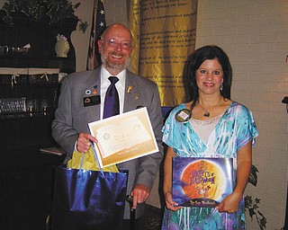 Rotary District Governor W.S. Hays is presented with a certificate by Austintown Rotary President Deanna Spirko for a book donation to Woodside Elementary School library for the Woodside Reads project. Hays visited the club recently …